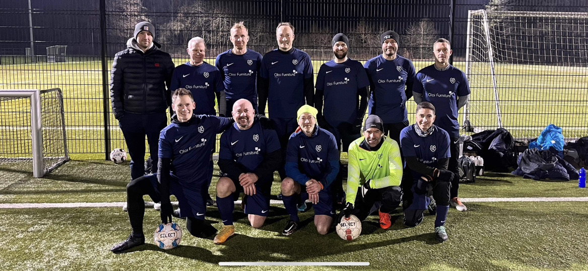 En flok glade veteraner er klar til foråret kampe. Tak til Dennis fra Olai Furniture og Montana for at bakke op om vores klub.